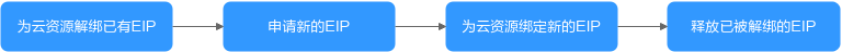 当您需要为弹性云服务器、弹性负载均衡、NAT网关等云资源更换其他EIP时,您可以为云资源解绑已有EIP,然后再绑定新的EIP,使得云资源通过新的EIP访问公网。