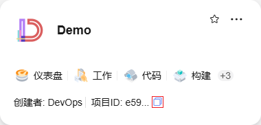 - 在CodeArts首页中找到目标项目卡片,在卡片中即可复制项目ID。