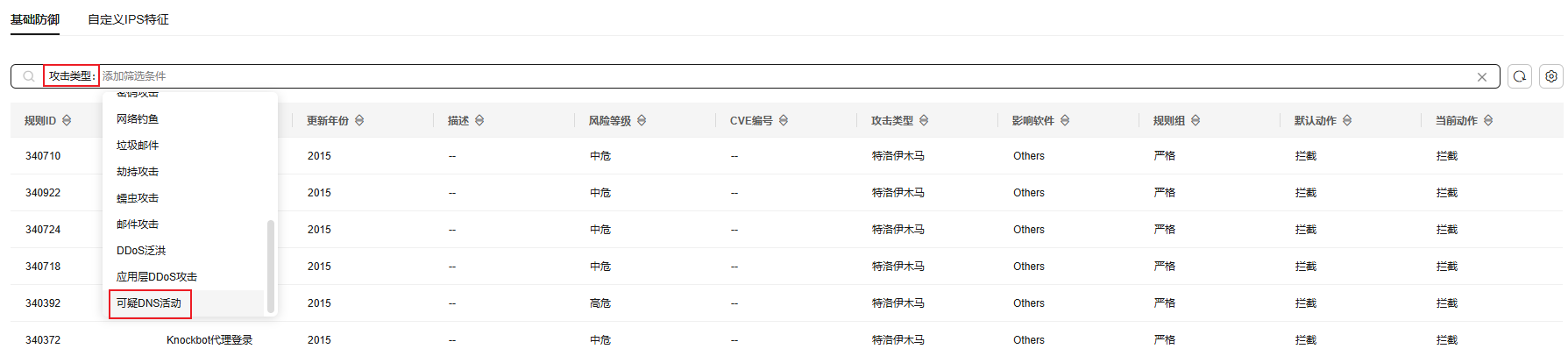 DNS是绝大部分互联网请求的组成部分,是互联网应用中非常基础和重要的一环,一旦DNS系统受到攻击将会对网络服务带来严重影响,因此保障DNS安全显得尤为重要。CFW提供了检测可疑DNS活动的入侵防御规则,当检测到可疑DNS活动入侵时,可以实时拦截入侵活动和攻击性网络流量。