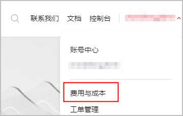 1. 登录华为云后,单击页面右上角的账号名称下拉框,选择“费用与成本”。