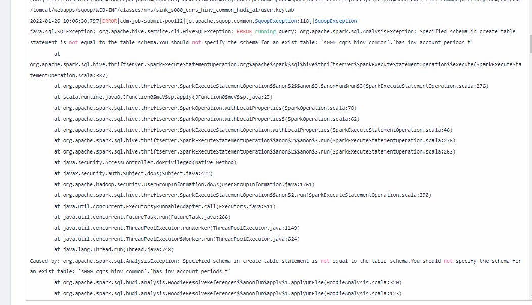 cdm迁移数据到hudi,hudi选择自动建表,执行建表语句报schema不匹配错误“org.apache.spark.sql.AnalysisException:Specified schema in create table statement is not equal to the table schema”。