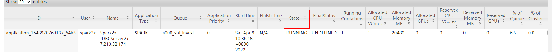 - 单租户执行不了spark sql,则多半是队列资源限制,打开yarn,搜索租户的队列,查看Spark2x-JDBCServer2x的yarn任务,此时可能会搜索不到yarn任务,或者State为ACCEPTED,这两种情况都是资源不足起不了yarn任务的现象。打开yarn的schedule,查看队列资源,关注以下几个参数: