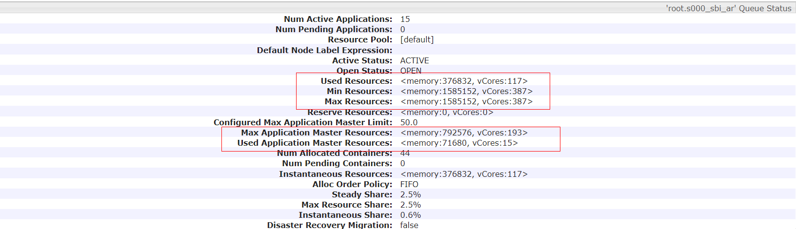 Max Application Master Resources: 队列中最大可供使用的AM资源