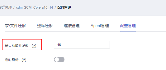 调整作业并发数,使其不超过集群并发数(建议集群并发数不超过46)。集群并发数即配置管理页面的最大抽取并发数。