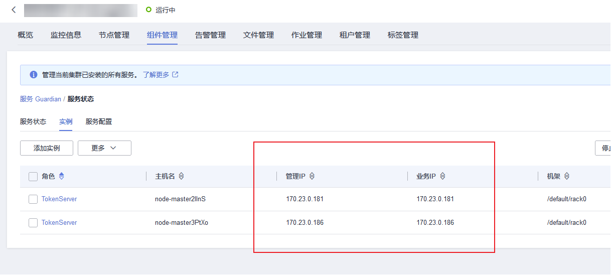 - 在MRS 集群上寻找Guardian组件tokenserver所在节点,并登录后台。