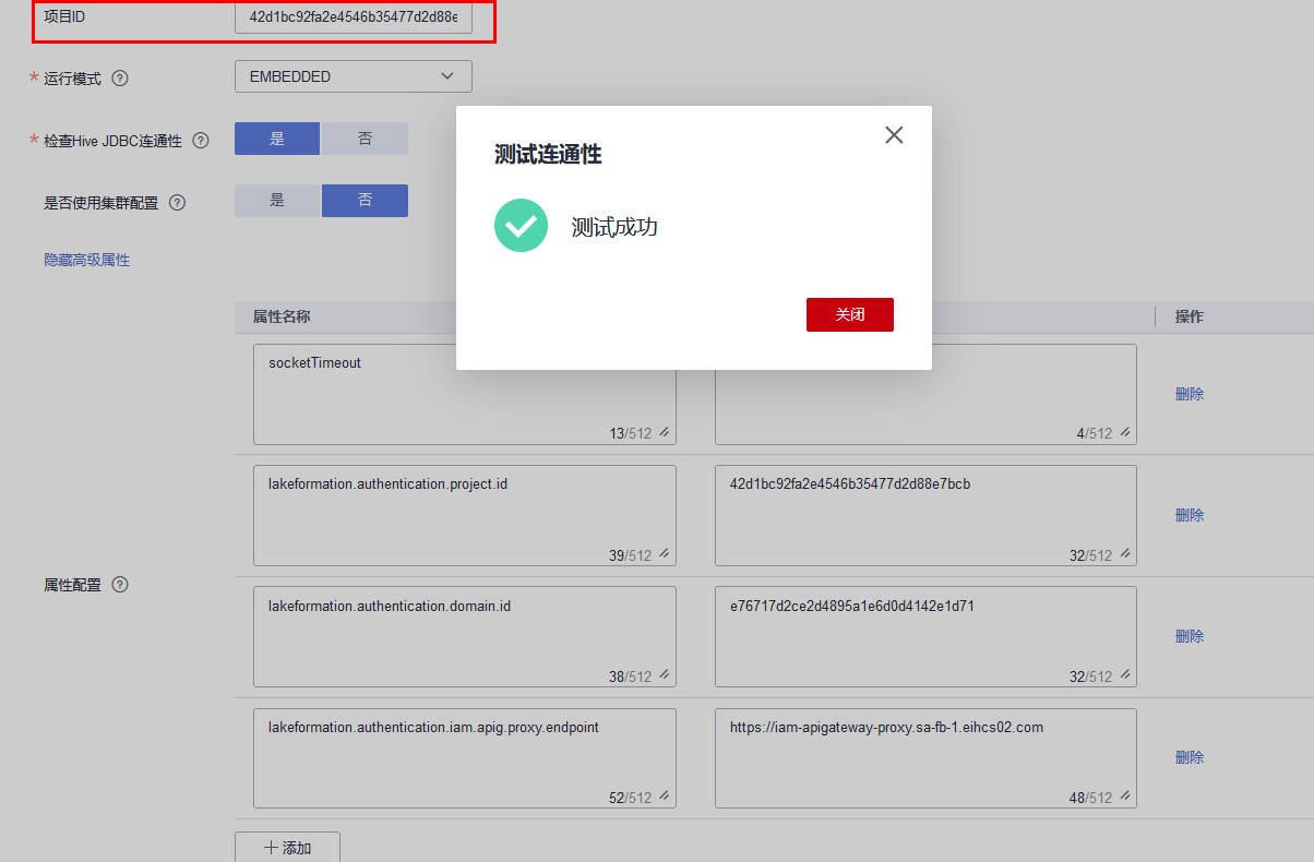 - 在属性配置中,新增lakeformation.authentication.iam.apig.proxy.endpoint 的配置项,配置endpoint value值。