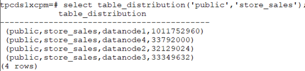 - 8.1.3及以上集群版本中支持使用gs_table_distribution()函数,全库查询所有表的数据倾斜情况。全库表查询时,gs_table_distribution()函数优于table_distribution()函数;在大集群大数据量场景下,如果进行全库表查询,建议优先使用gs_table_distribution()函数。