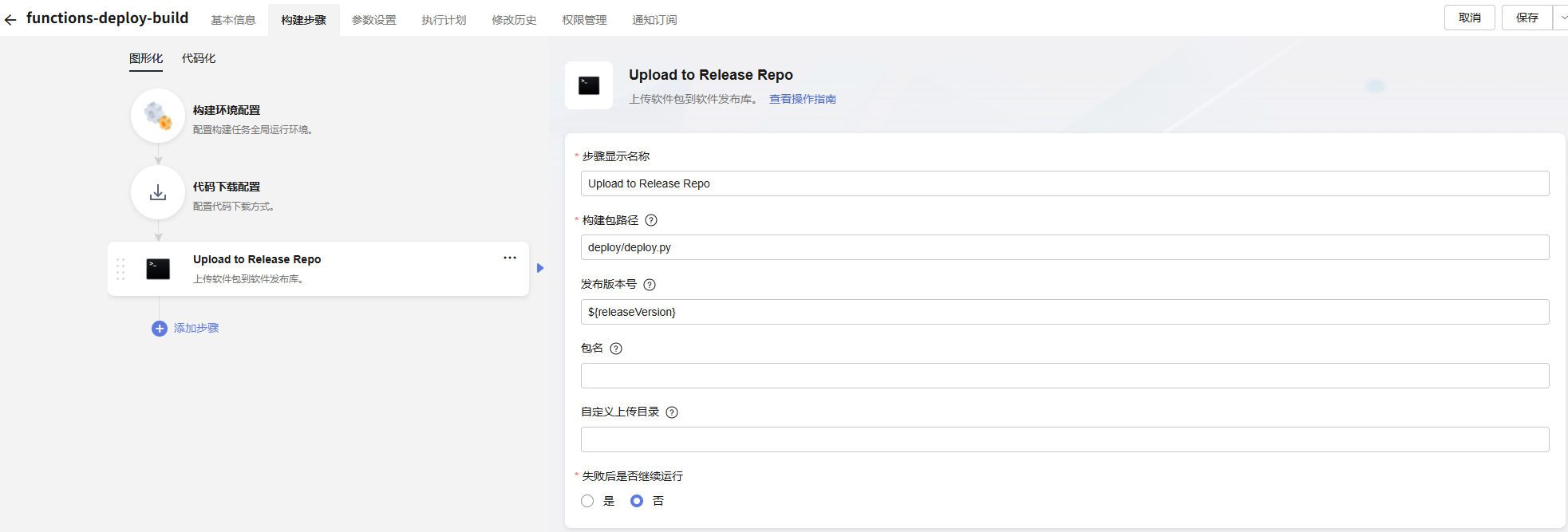 - 选择软件包:输入/functions-deploy-build/${releaseVersion}/deploy.py