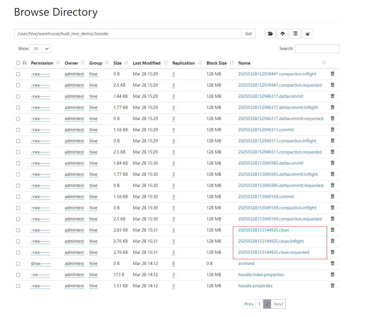 查看.hoodie目录,如果该目录里有.clean结尾的元数据文件存在,则clean在执行。