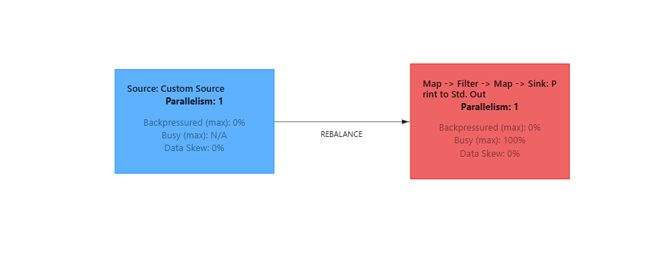 以一个作业为例,作业的第二个task已经busy,但是因为算子都串联在一起,无法判断是哪个算子有问题。