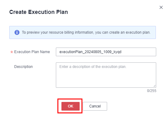 - 在弹出的创建执行计划框中,自定义填写执行计划名称,单击“确定”。