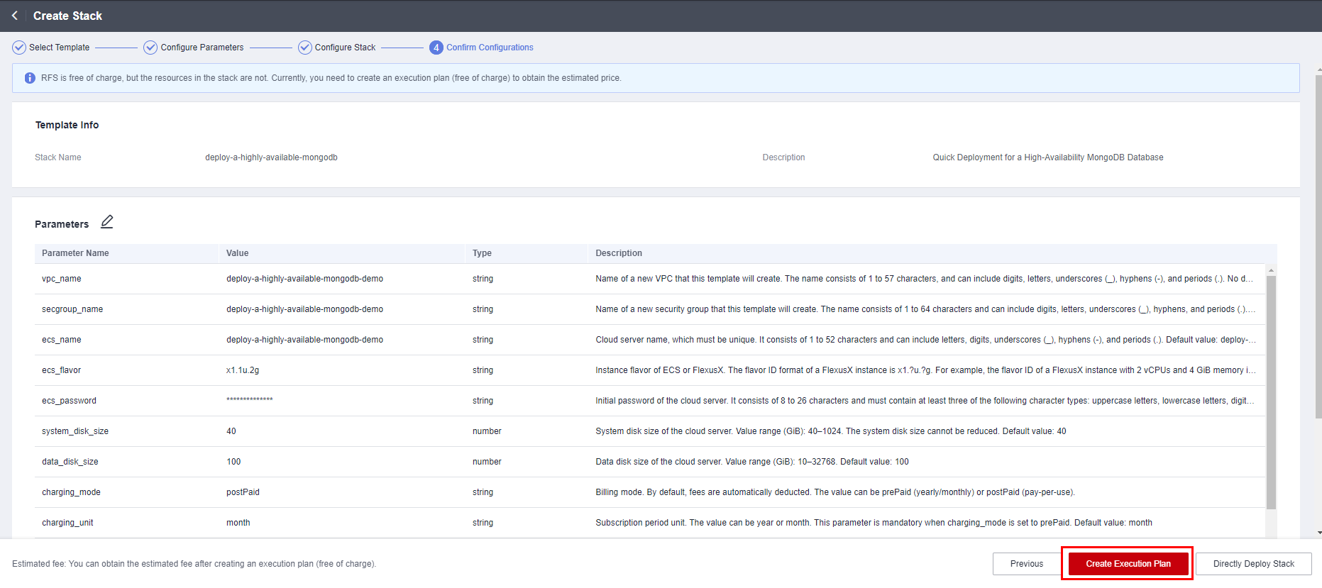- 在配置确认页面中,单击“创建执行计划”。