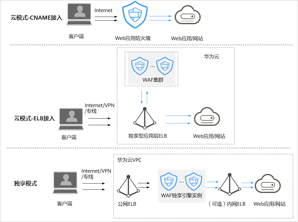 购买了云模式标准版、专业版或企业版后,支持使用ELB接入,域名、QPS、规则扩展包的配额与云模式的CNAME接入方式共用。 |