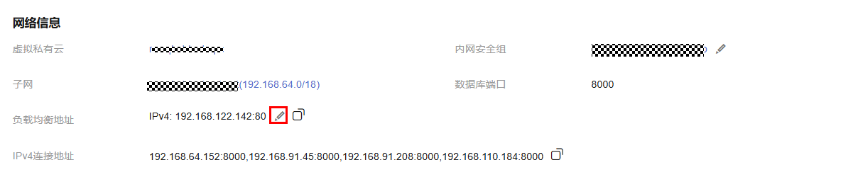 - 在“基本信息”区域的“网络信息”栏的“负载均衡地址”处,单击