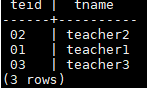 INSERT INTO teacher VALUES('03' , 'teacher3');