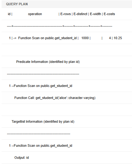 如果函数的入参是常量,会在优化器阶段计算该函数的值。益处是可以尽早获取表达式的值,从而能更准确的进行代价估算,生成的执行计划也更优。 用户自定义的IMMUTABLE的函数是会被自动下推到DN执行的,但是这样可能有潜在的风险,即如果用户错误定义了函数的IMMUTABLE属性,但是函数执行的过程并不是IMMUTABLE的,那么可能会导致结果错误等严重问题。因此,用户在指定函数的属性为IMMUTABLE的时候,要特别慎重。 举例如下: