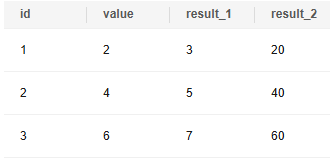 DROP TABLE IF EXISTS test_data; CREATE TABLE test_data (id serial, value int); INSERT INTO test_data (value) VALUES (2), (4), (6); SELECT id, value, (compute(value)).* FROM test_data ORDER BY 1; |