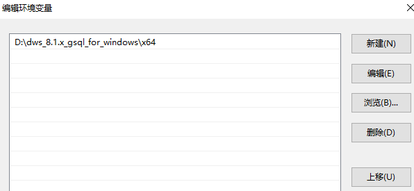 方式二:在控制面板中选择“系统 > 高级系统设置 > 高级 > 环境变量”,在系统环境变量Path中增加gsql路径。例如: