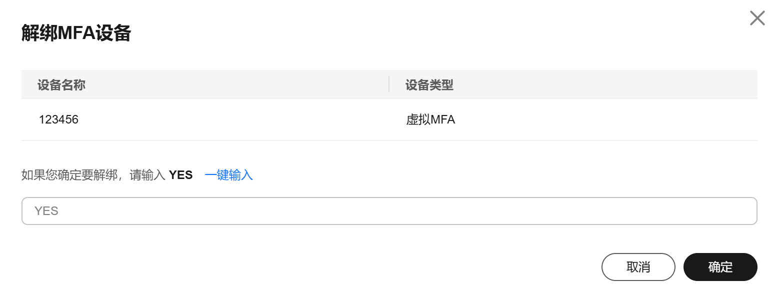 - 单击“确定”,验证成功后,完成解绑MFA操作。
