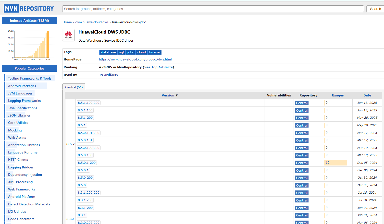 implementation("com.huaweicloud.dws:huaweicloud-dws-jdbc:8.5.1")