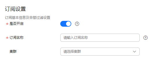 - 在“订阅设置”区域,设置订阅基本信息及告警过滤。
