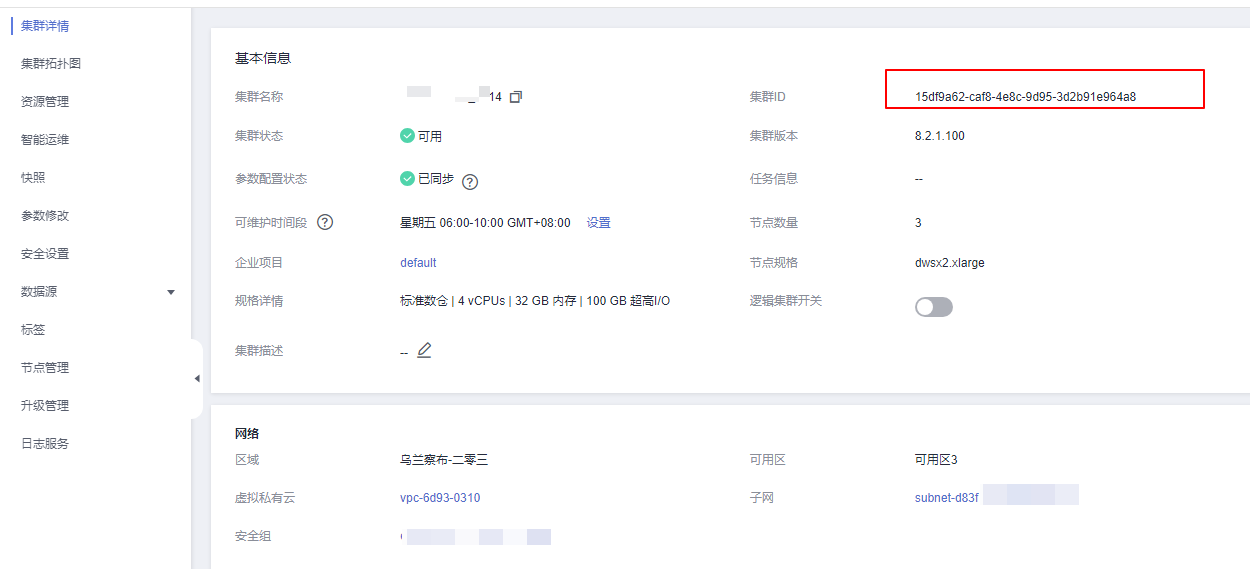 - 在“基本信息”模块查看集群ID,如下图所示。