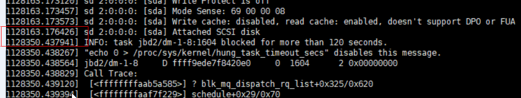 Attached SCSI disk task jdb2/xxx blocked for more than 120 seconds.
