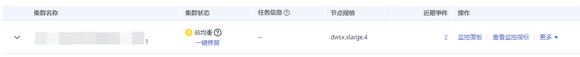 - 在“专属集群 > 集群列表”页面,找到非均衡状态的集群。