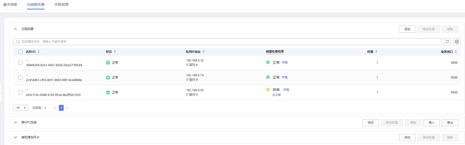 - 进入负载均衡服务控制台,单击解绑的ELB名称,切换到“后端服务器”页签,检查集群CN节点是否已被删除。