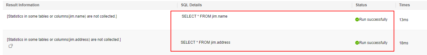 SELECT * FROM jim.name; SELECT * FROM jim.address;