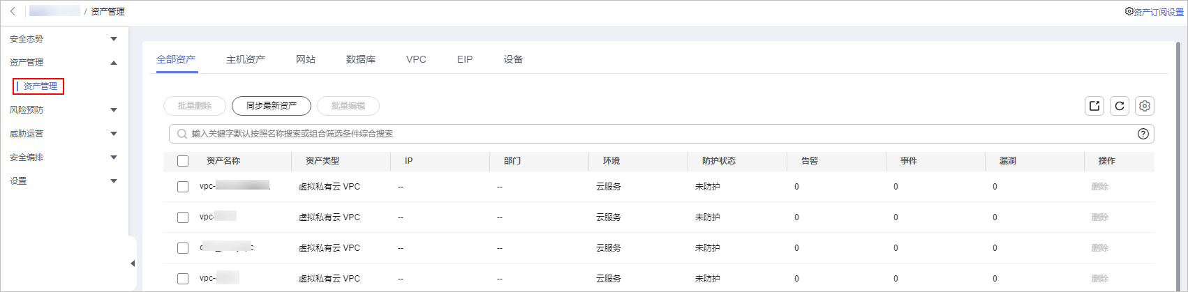 - 在资产管理页面中,单击页面右上角“资产订阅设置”,右侧弹出资产订阅设置页面。
