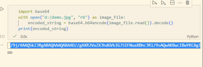 运行时请确保文件路径 d:/demo.jpg 是正确的,并且文件确实存在于此路径下。部分 Windows 环境下字符编码的默认设置可能与代码不兼容,导致读取后的解码报错。这种情况下可以尝试将代码中的decode()修改为decode('utf-8')来匹配适合的字符编码。