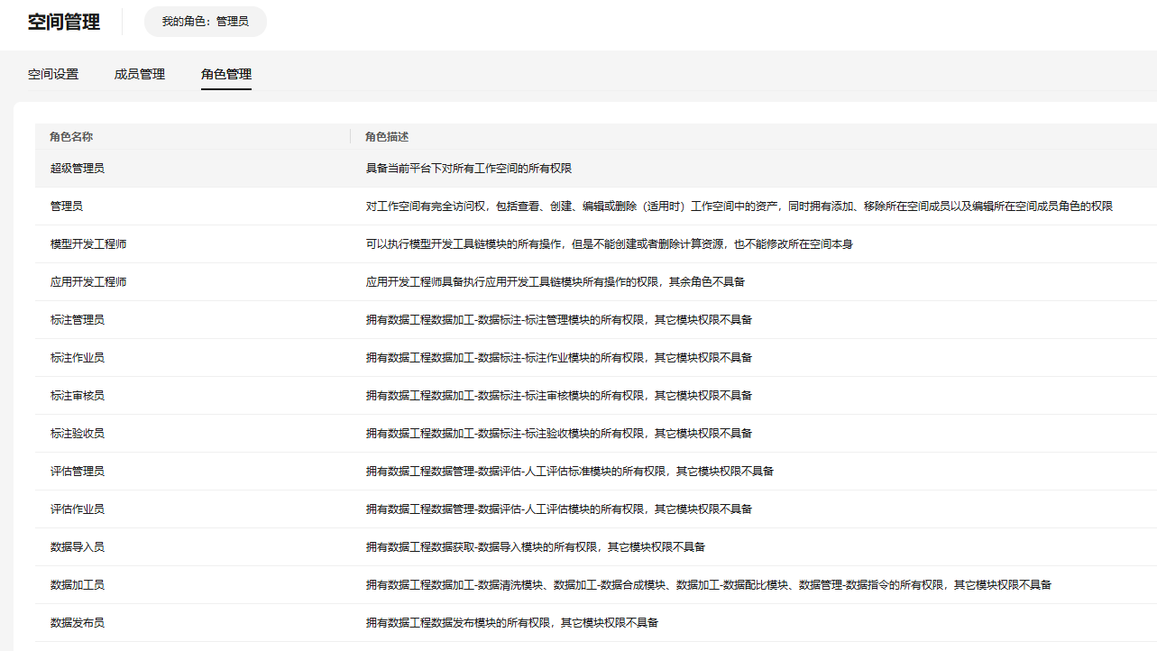 使用ModelArts Studio大模型开发平台,如果需要在空间内进行数据、训练、部署等相关操作,需要空间管理员给IAM用户授予空间角色。