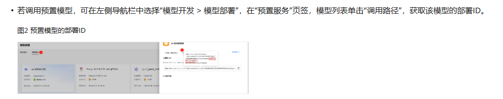 调用预置模型的API接口,根据官网文档无法找到预置模型的部署ID所在界面。