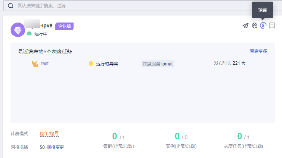 - 在网格列表页,在待续费的包年/包月网格右上角单击
