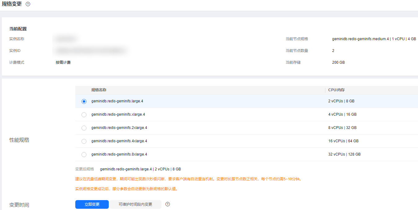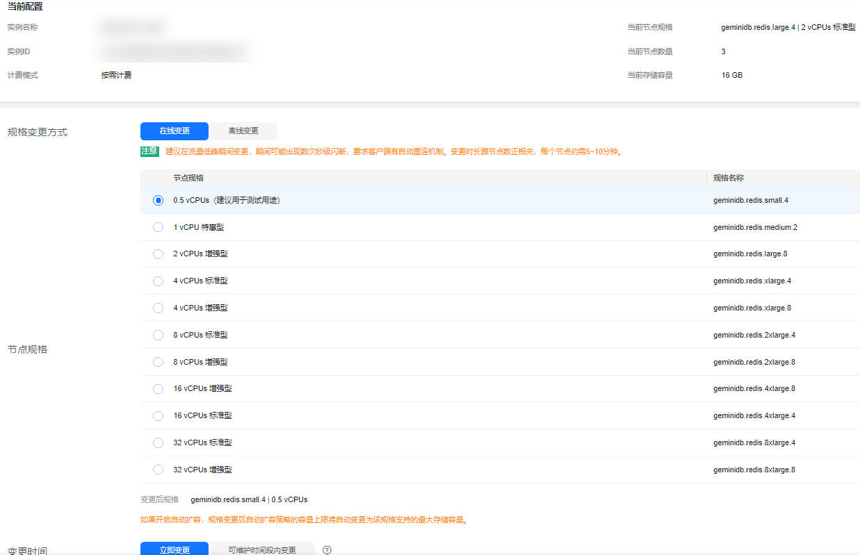 - 正在进行变更的节点,其计算任务由其他节点分担,请在业务低峰变更,避免实例过载。