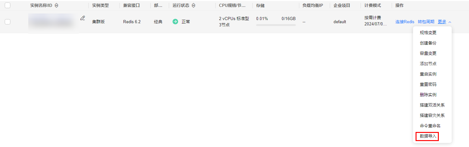 - 在“实例管理”页面,选择目标实例,单击操作列“更多 > 数据导入”。