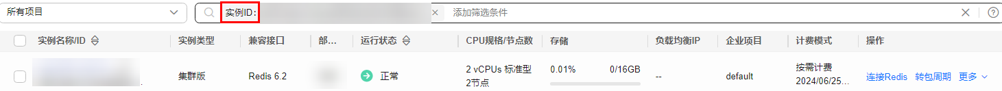 - 选择资源所在的区域,在筛选条件中选择“实例ID”,并输入3中复制的资源ID,单击