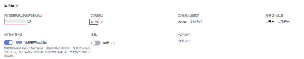 - 在“连接信息”区域即可获取到“负载均衡地址”和对应的端口信息。