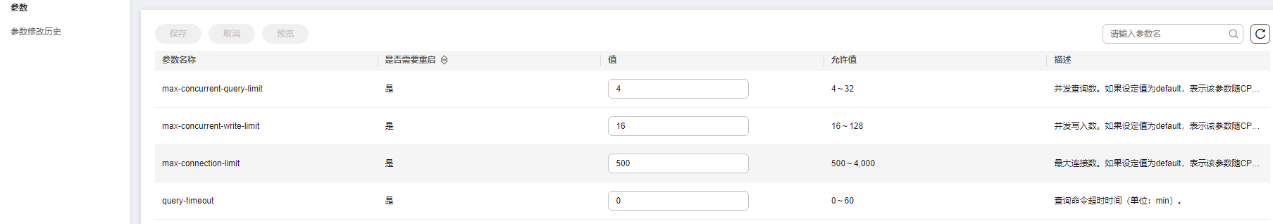 您在修改参数相关参数值时,请谨慎,避免因设置参数值不当造成实例或业务异常。