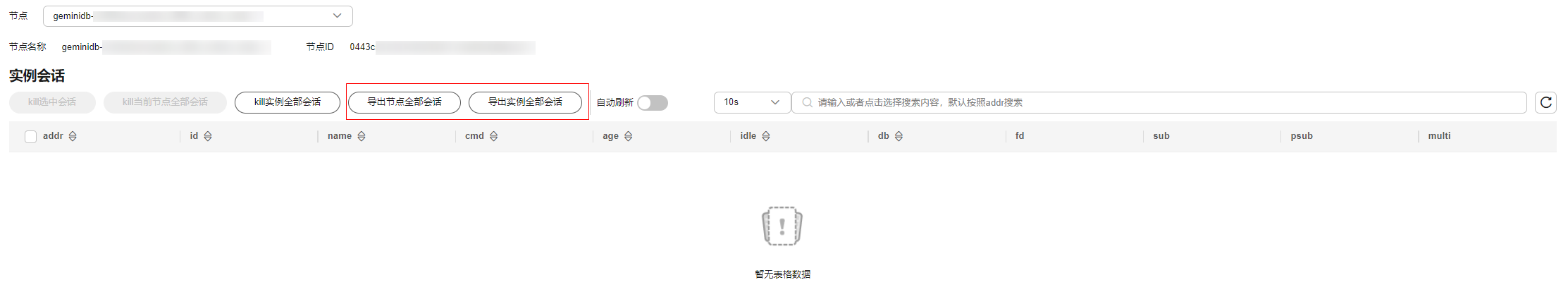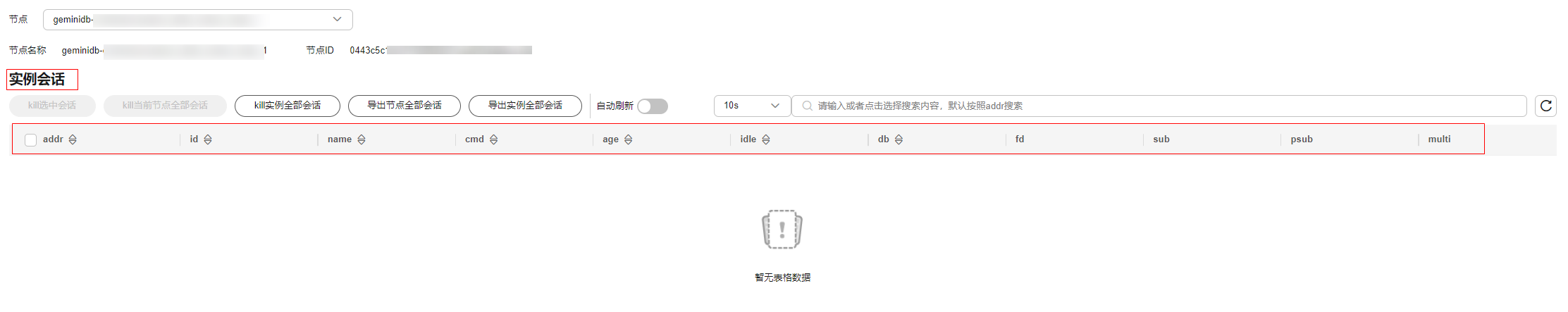 - 在“实例会话”页面,选择“节点”,查看节点对应的会话信息,具体参数请查看表1。