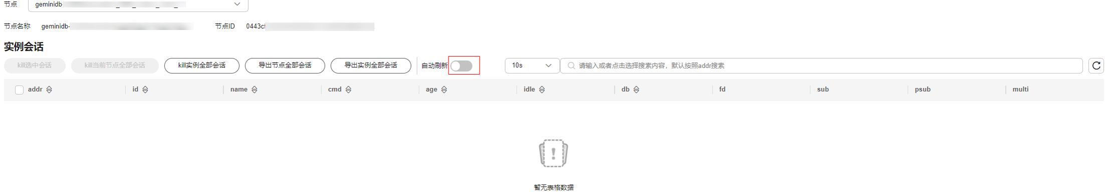 “自动刷新”开关按钮默认关闭,您可以通过单击按钮打开自动刷新。自动刷新打开后,默认每10s刷新一次数据,您可以根据自己的需要选择10s、30s或60s。
