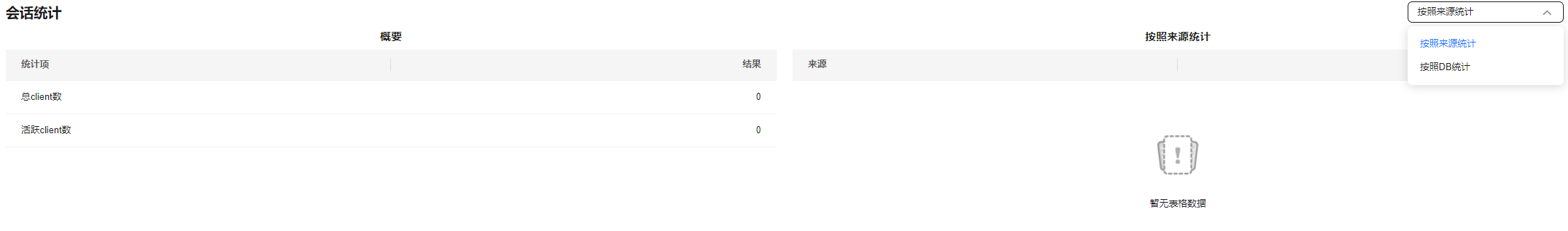 - 您可以根据自己的需要在会话统计中选择“按照来源统计”或“按照DB统计”,具体参数请查看表2。