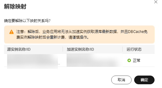 - 映射关系解除后,业务应用将无法从加速实例获取源库最新数据,请谨慎操作。