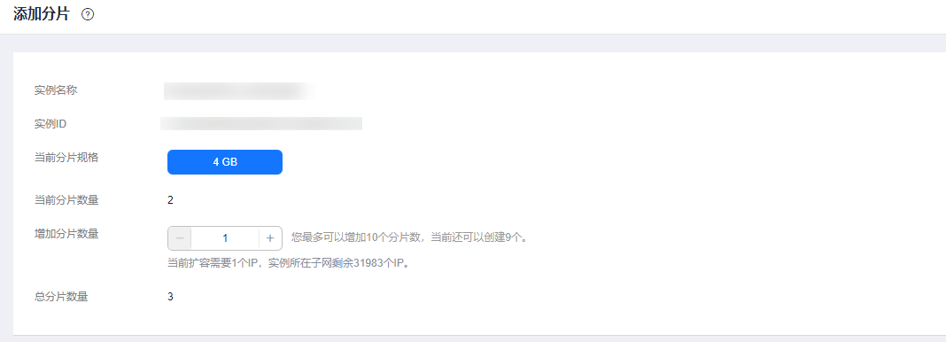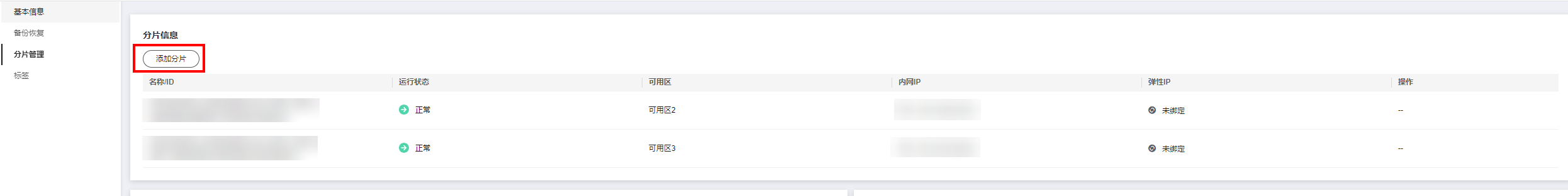 - 实例状态为正常、恢复检查中时可以添加分片。