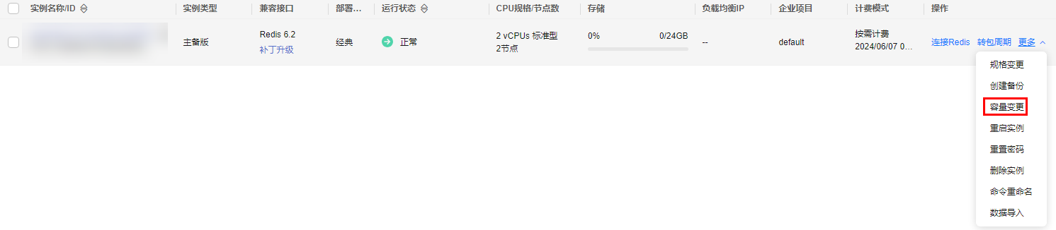 - 在“实例管理”页面,选择指定的实例,单击,进入“容量变更”页面。