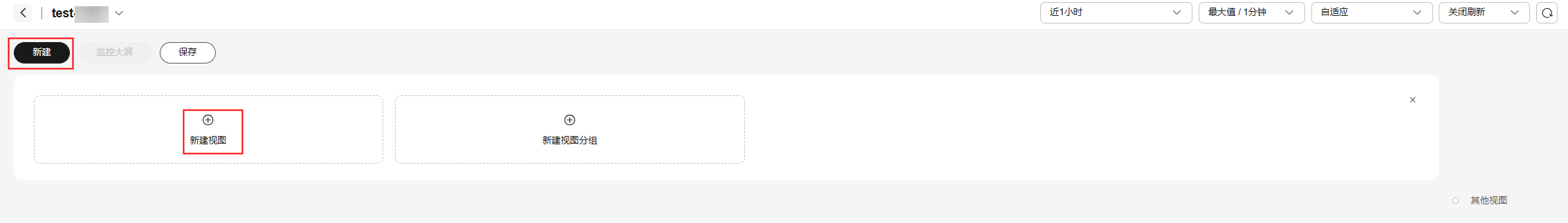 - 在“我的看板”页面,单击目标看板名称,进入监控看板详情页,单击“新建”来创建您的“视图”或“视图分组”。