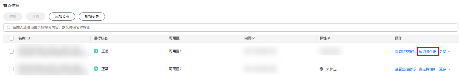 - 对于已绑定弹性公网IP的节点,需解绑后,才可重新绑定其他弹性公网IP。