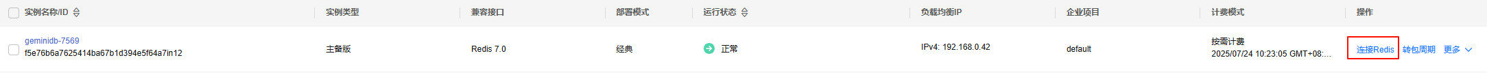 - 在实例列表中选择目标实例,单击操作列“连接Redis”。