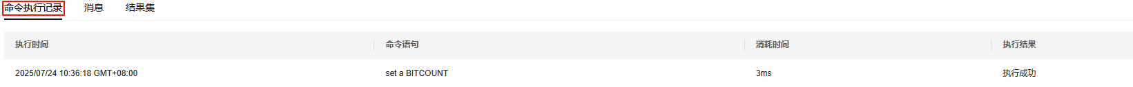 命令执行成功后,您可以在页面下方结果集中查看执行结果。